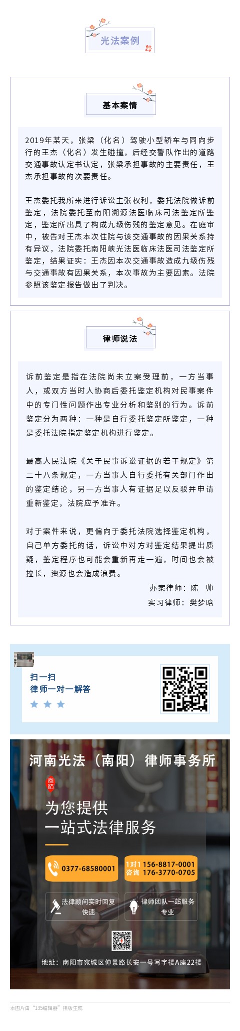 光法案例:交通事故之诉前鉴定